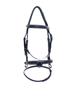 Muserolle combinée / Noseband amovible / Surpiqué blanc et bouclerie Inox.