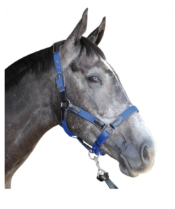 Licol nylon, doublé cuir. Têtière anatomique doublée, avec 2 boucles d’ajustage. Muserolle doublée, avec boucle de réglage. 1 mousqueton à ouverture rapide. Bouclerie inox.