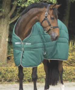 Cette couverture d’écurie est fabriquée en polyester indéchirable 1000D avec une doublure microfibre ave garnissage en fibres thermoliées. Sa coupe classique avec double fermeture à l’avant et son col en polaire apportera un grand confort à votre cheval