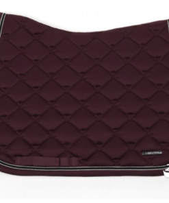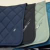 Tapis de selle “Venus”. Aspect satin à l’extérieur, mousse haute densité 5 mm, garniture synthermax 240 g et doublure Quick-Dry. Galon noir/blanc.